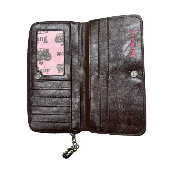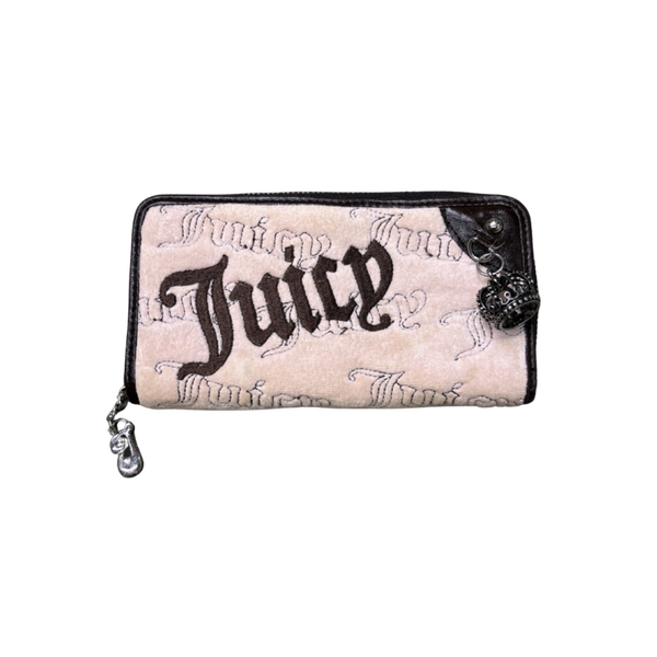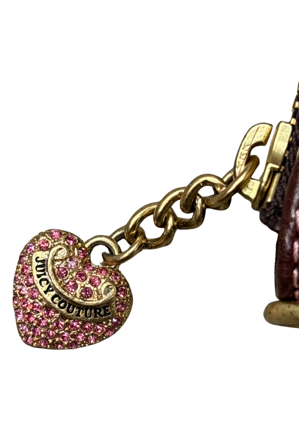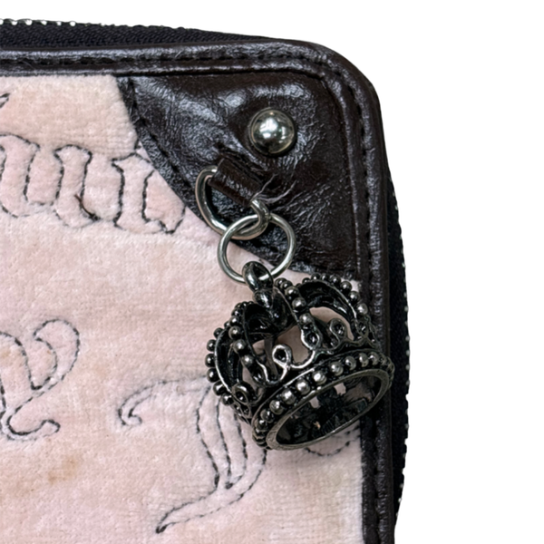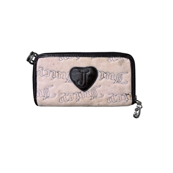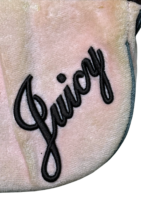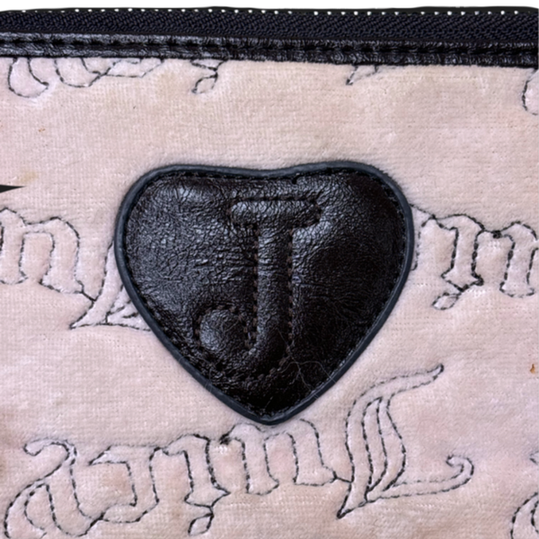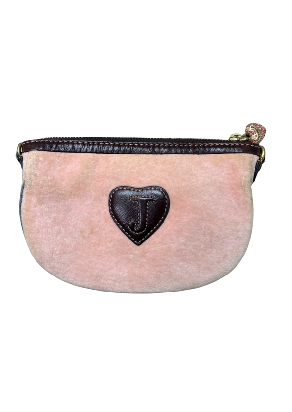 This adorable Juicy Couture set includes a soft pink velour wallet and matching mini clutch the perfect mix of cute, chic, and classic Juicy style. The wallet features bold vintage “Juicy” lettering, embroidered script details, and a spacious interior with compartments for all your essentials. The mini clutch adds charm with pleated velour, dark brown trim, and a sparkling heart charm. Both pieces show light signs of use but remain in very good condition. Stylish, practical, and a true throwback grab them together as a set!