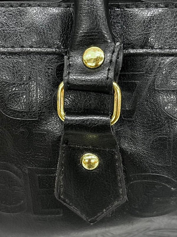 This sleek and structured Dolce & Gabbana handbag is crafted from high-quality black leather with an all-over embossed logo design that adds a bold, textured finish. The bag features double rolled leather handles, gold-tone hardware, and a striking yellow D&G logo plaque on the front for a touch of contrast and luxury. Spacious and stylish, it's perfect for everyday use or as a statement piece for your outfit. There may be light signs of use, but the bag remains in very good overall condition a timeless piece for any designer lover.